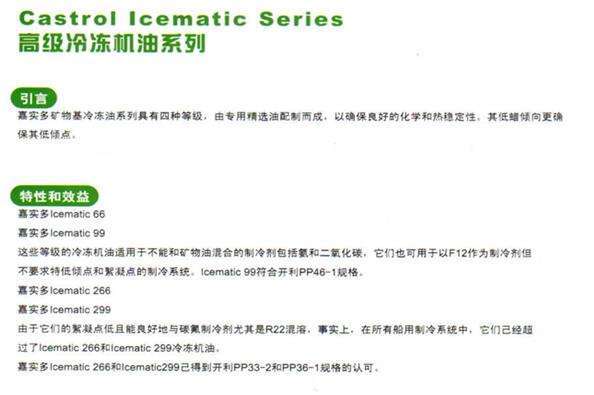 产品详情:嘉实多ICEMATIC66高级冷冻机油